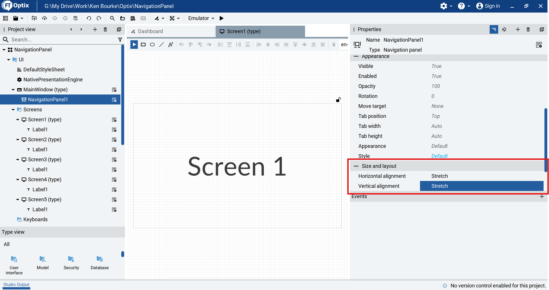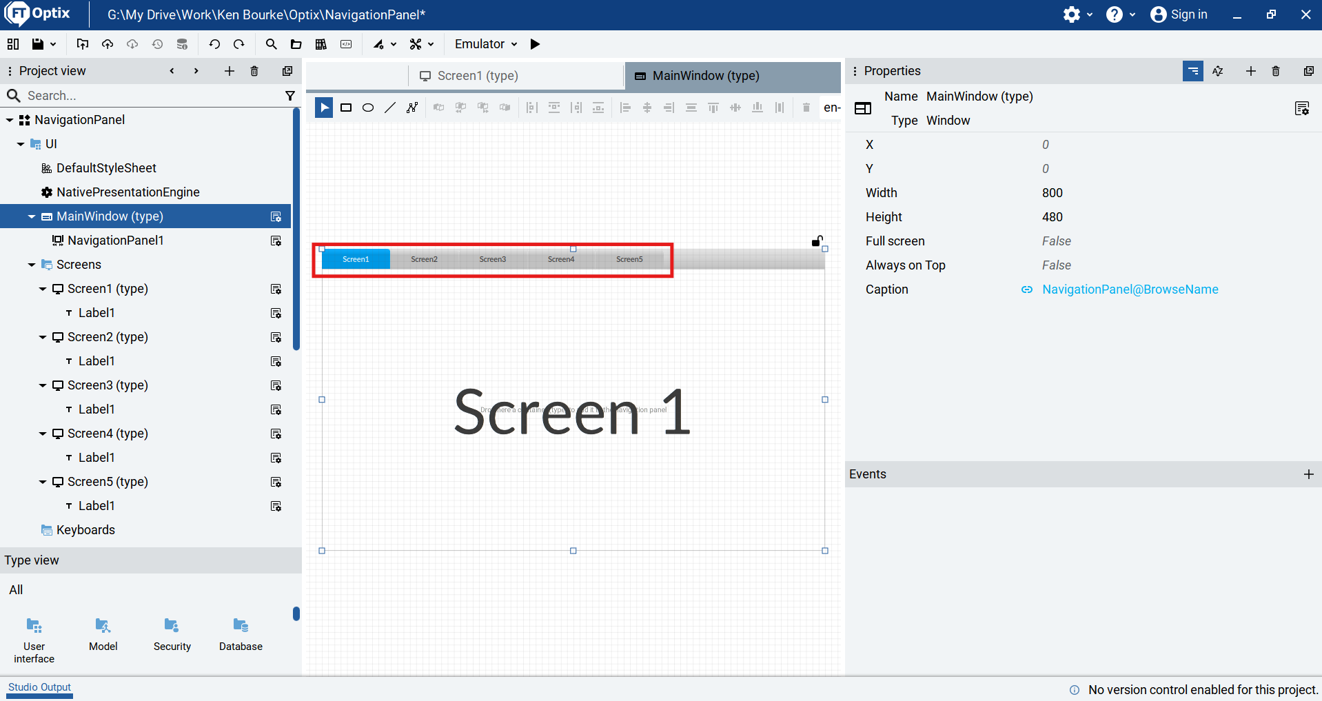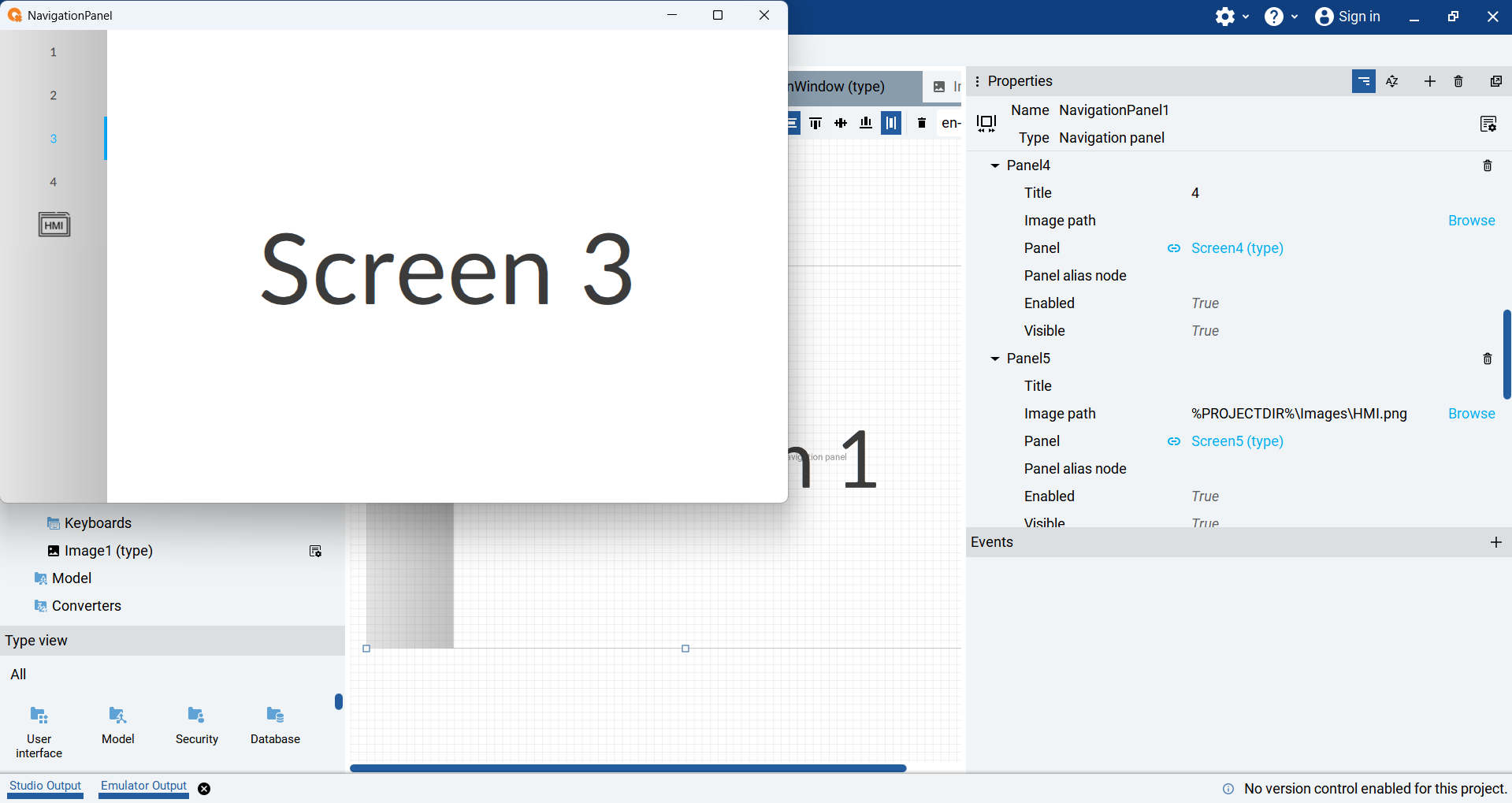 Now that my Navigation Panel is set up, I run the project using the emulator and verify that I can switch screens by clicking on the tabs that I have set up.