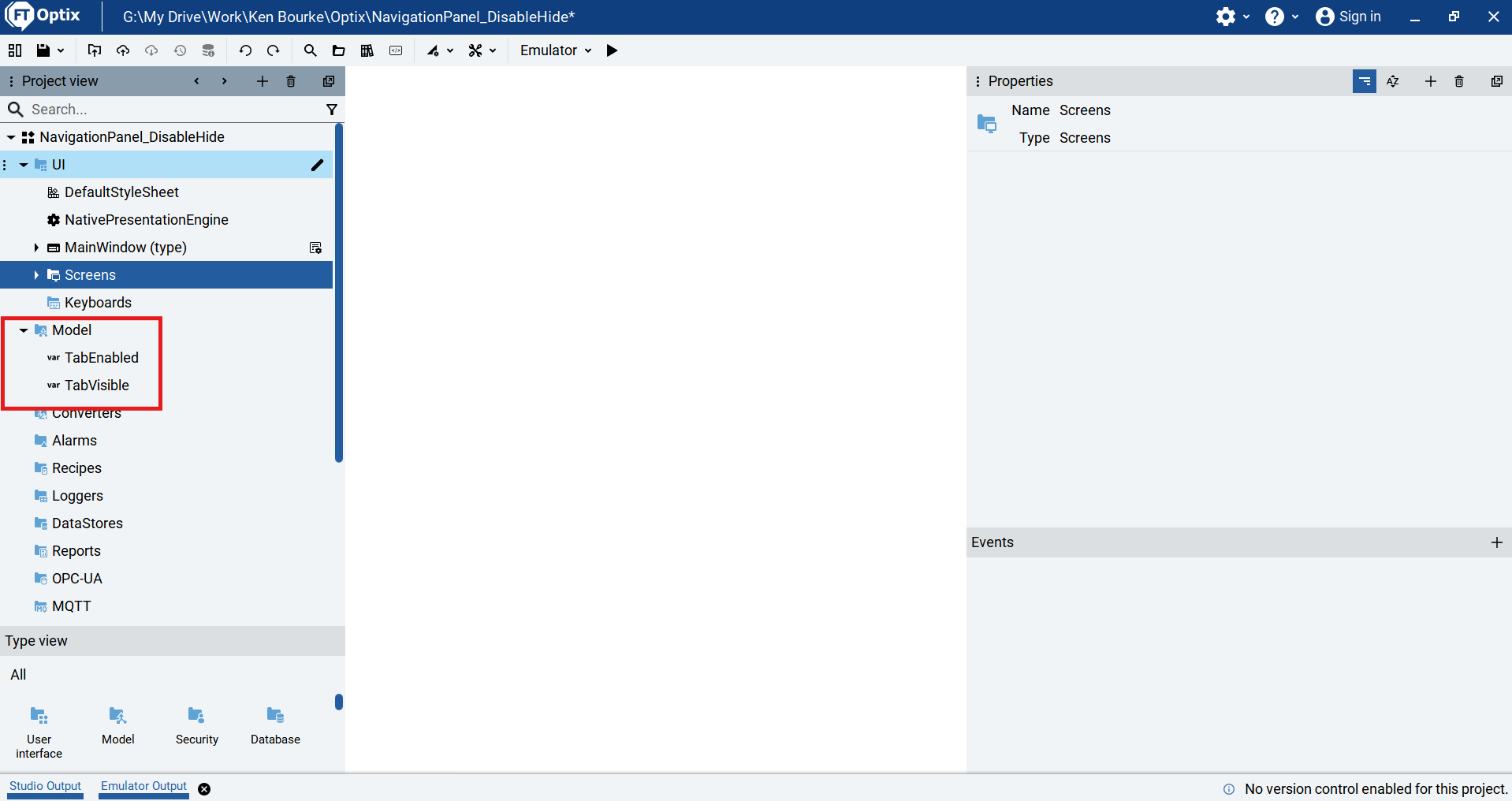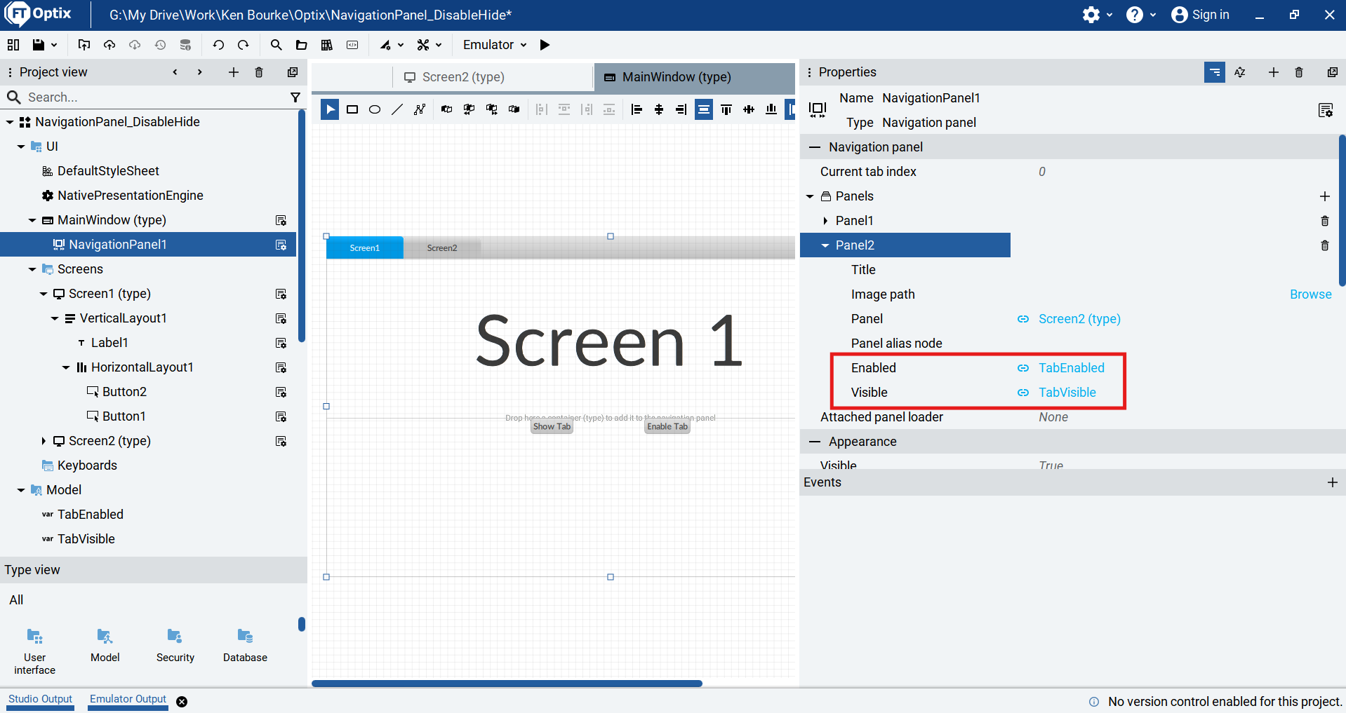 In this project, I have added two Boolean variables to the Model folder called TabEnabled and TabVisible.