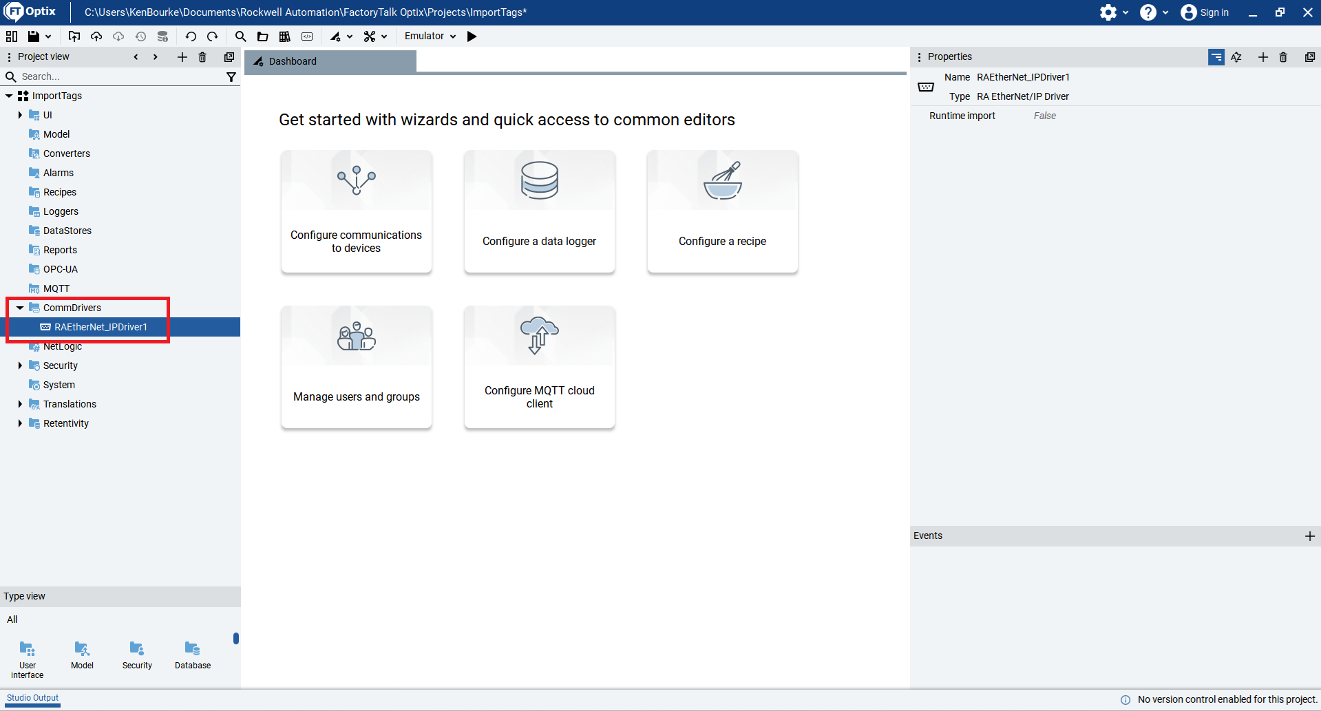 To add a communication driver to the project, select the type of driver that you want to add from the list. In this case, I add an RA EtherNet/IP communication driver to the project.