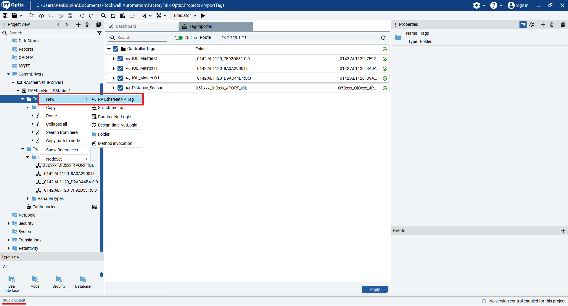 To do that, right-click on a station and select New > RA EtherNet/IP Tag